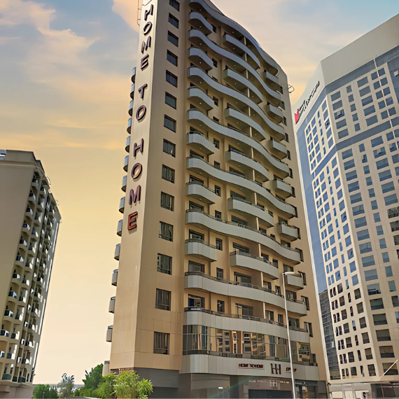 Apartment hotel in Dubai with amenities including a gym, an outdoor pool, a spa area with a sauna & hot tub and underground parking.